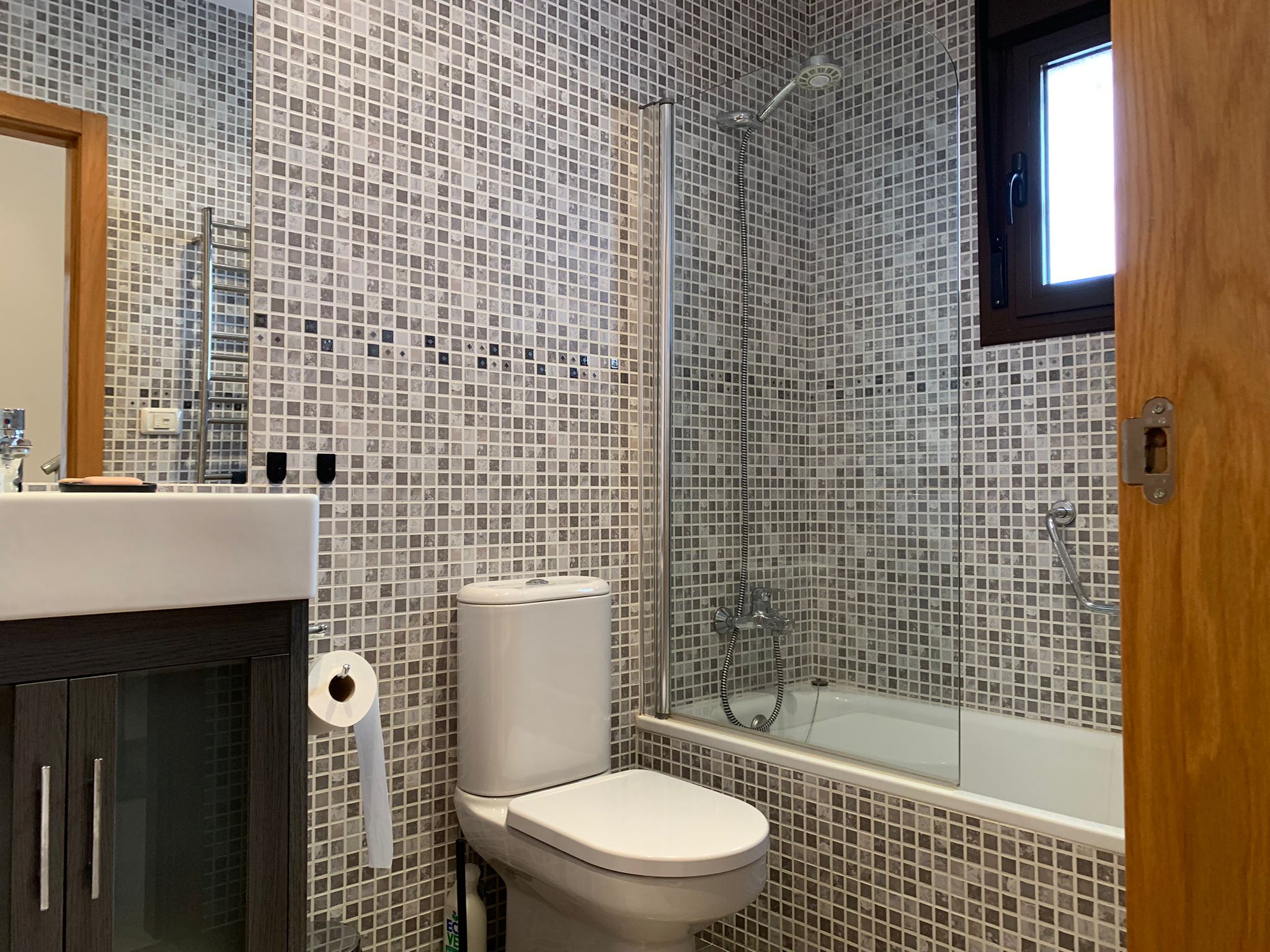 The bathroom on the ground floor has electric heating.
