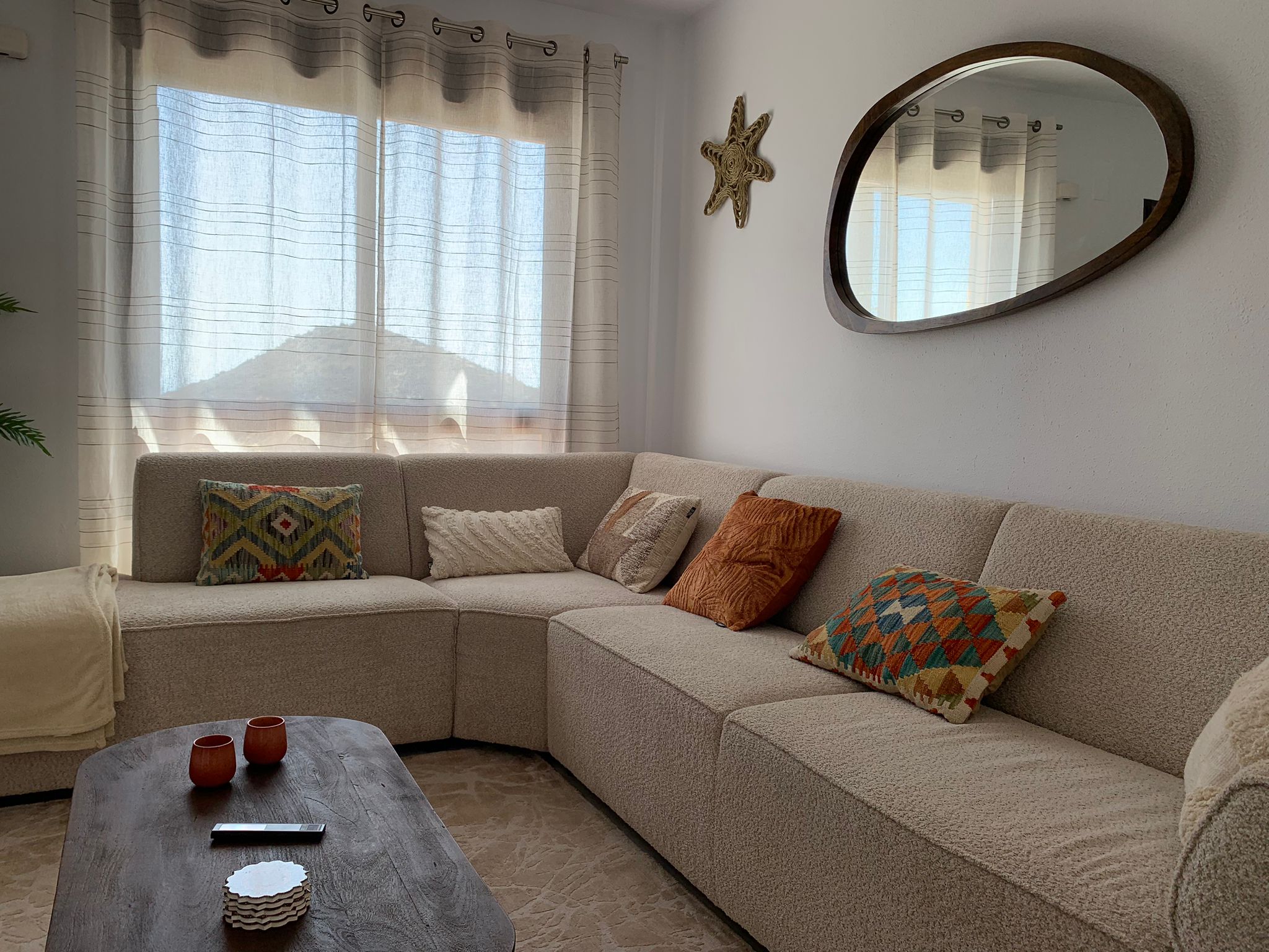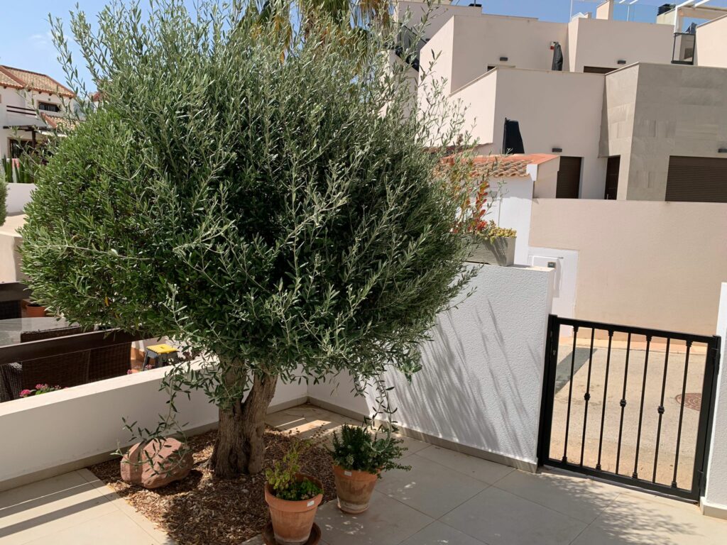 In the house and on the terraces at the front of the house you have a great view. Because you are at an altitude of 50 meters, you look out over the entire Vega Baja. You can see the Moorish city of Elche (World Heritage) or El Palmeral very clearly at a distance of 25 km. A little to the right you can see the highest mountain of the Costa Blanca North, the Monte Antaina with more than 1500 meters. A little further to the right you will see the sea with Santa Pola. On the left you can see the mountains with Crevillente and Albatera.
