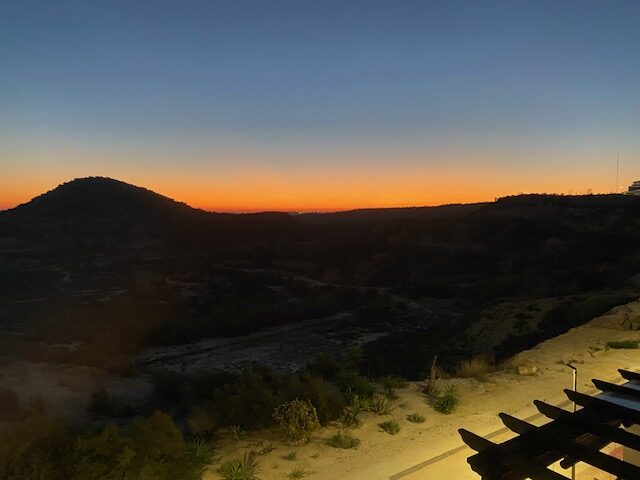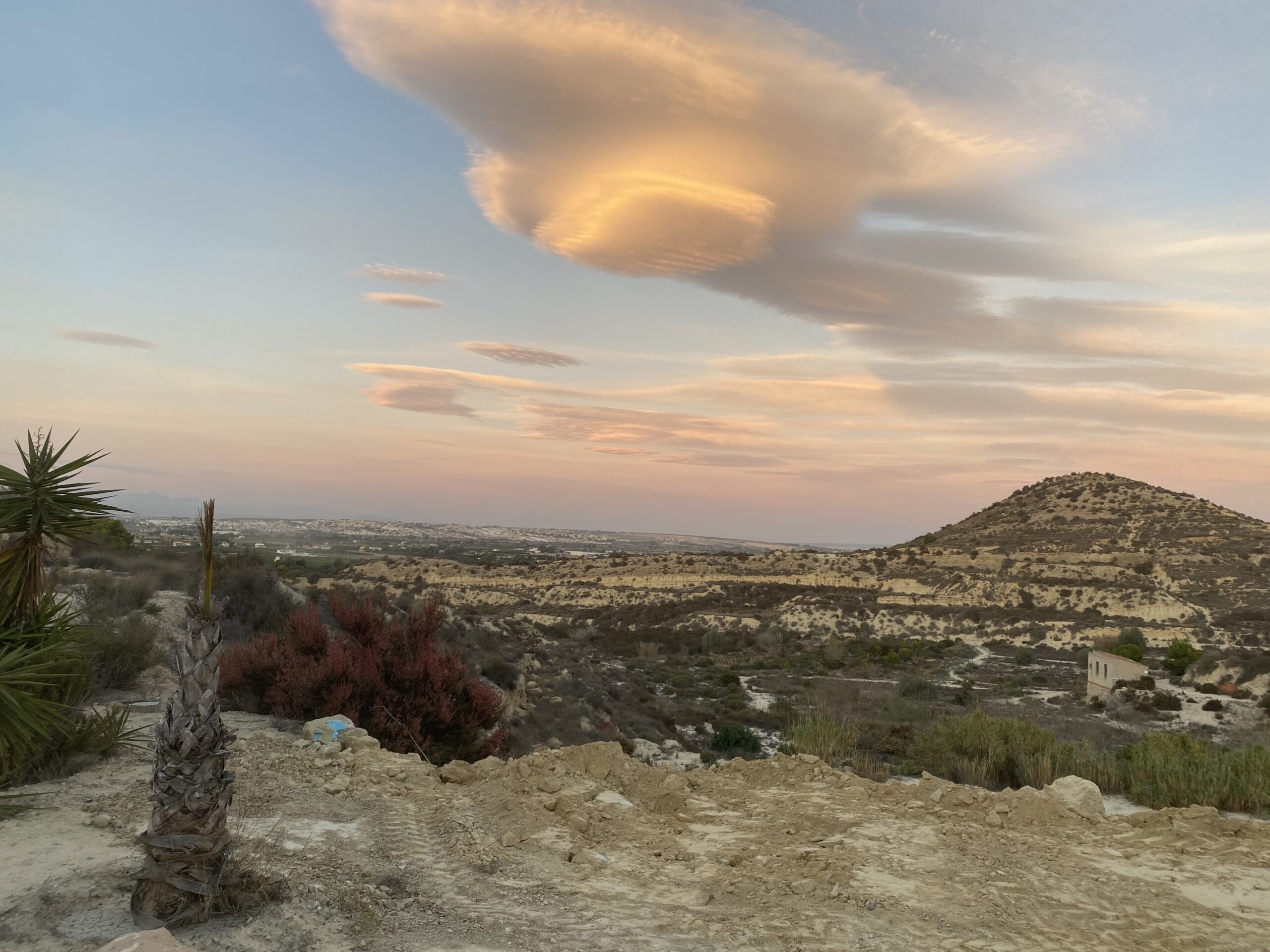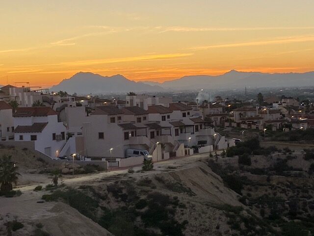 At night the twinkling, soothing lights of La Marina and the dark part where the nature reserve El Fondo is located.