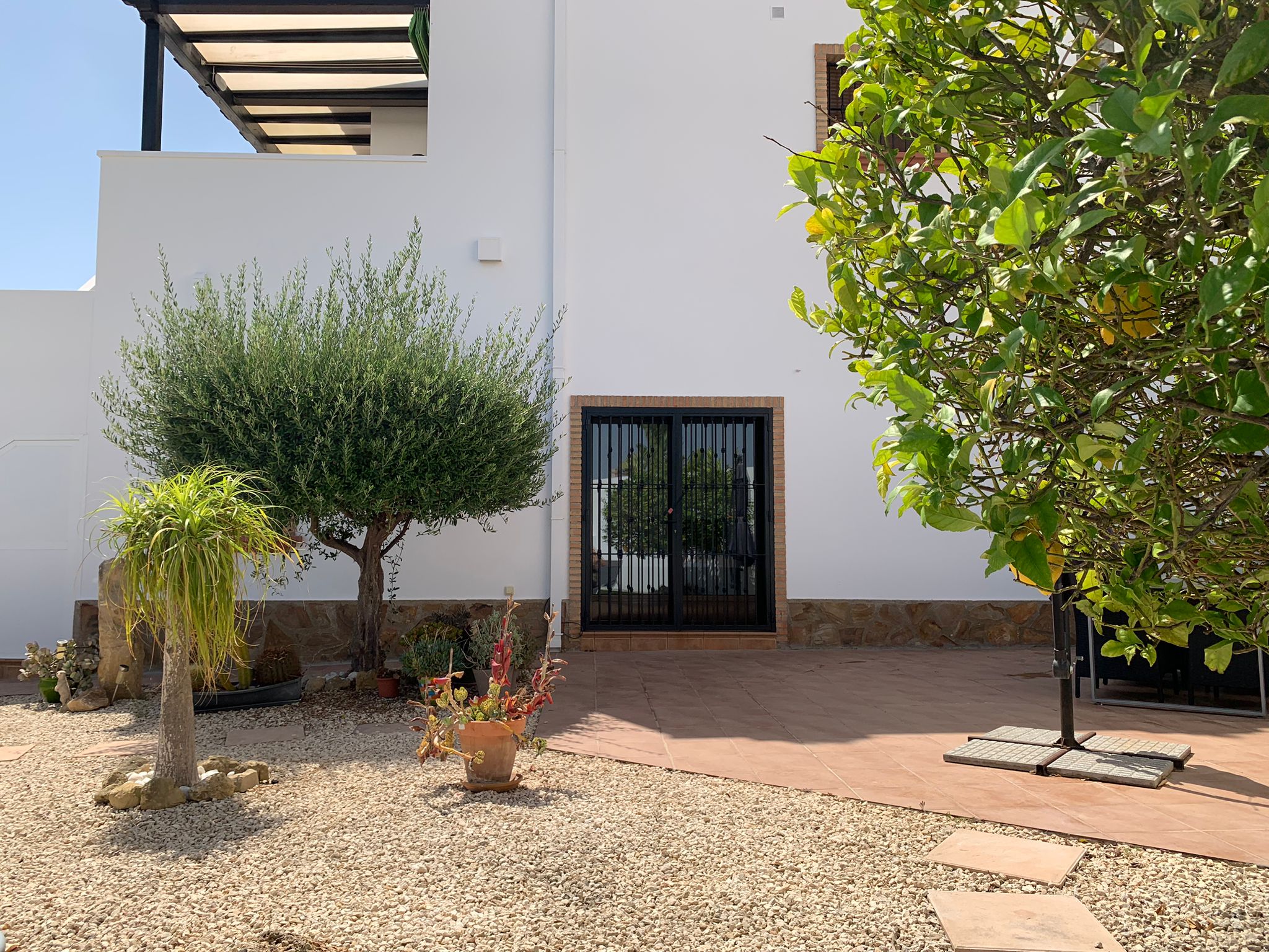 Through the kitchen you reach the front terrace where you can enjoy a cup of coffee in the morning sun.